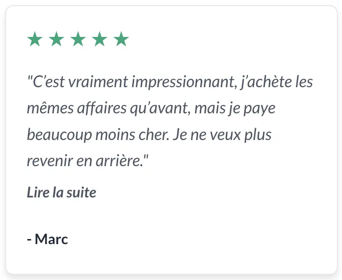 "C’est vraiment impressionnant, j’achète les mêmes affaires qu’avant, mais je paye beaucoup moins cher. Je ne veux plus revenir en arrière."